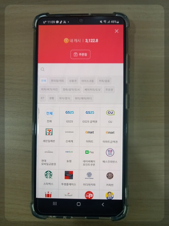 기본화면 하단의 캐시인출 혹은 좌측 사이드바의 캐시상점을 누르면 지금까지 얻은 캐시로 살 수 있는 모바일 상품권들을 확인할 수 있습니다. 현금 바로 인출 기능이 얼마까지 있었던 것 같은데, 상품권의 종류가 다양해지면 해당 메뉴는 사라진 것 같네요. 아무튼 상품권도 온라인 상품권 거래소에서 얼마든지 현금화가 가능하니, 일정 캐시가 쌓였을 때 과감하게 원하는 상품권을 사는 것을 추천드립니다.
